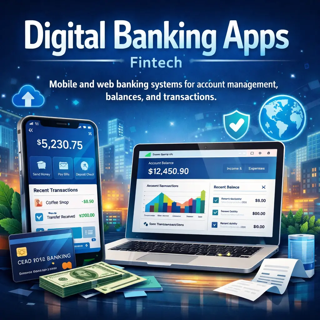 Mobile and web banking systems that enable secure account management, balance tracking, and seamless financial transactions across devices.